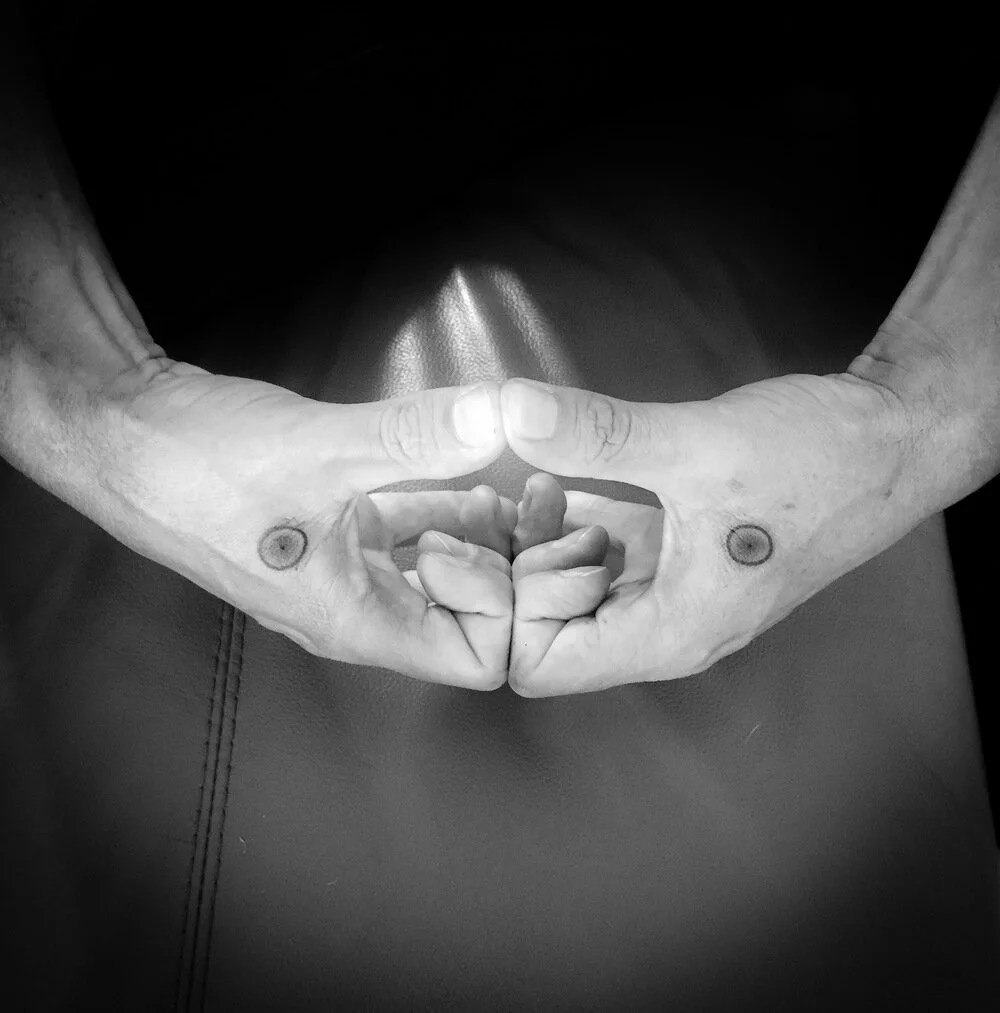 I recall the shock of the needle entering my skin, popping through the skin layer to the deeper sinew, muscle. Being right handed I marked the left hand side of my body. I plunged the needle ten times and created a dot just above my thumb on my left hand and it is still there.