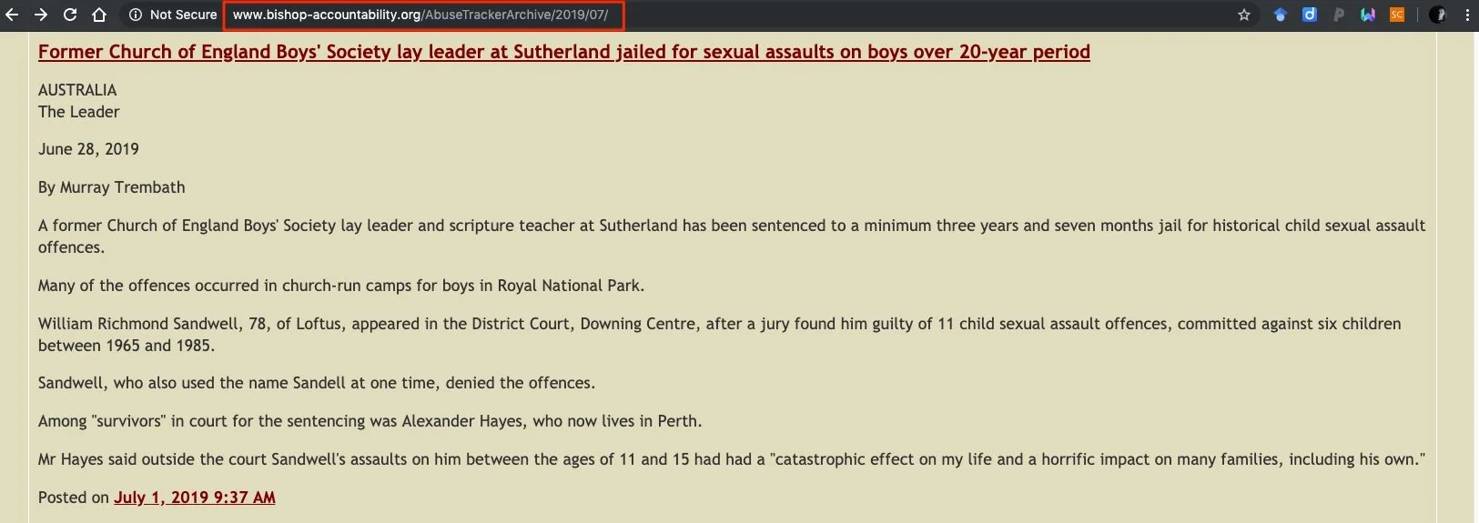 On the very same evening I found the following in the Bishop Abuse Tracking website.