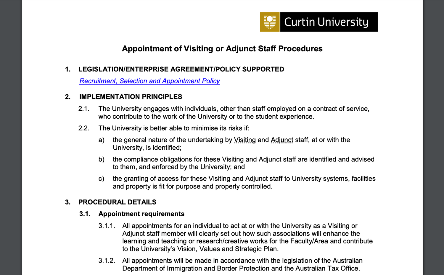Screenshot: Policies for Research Associates